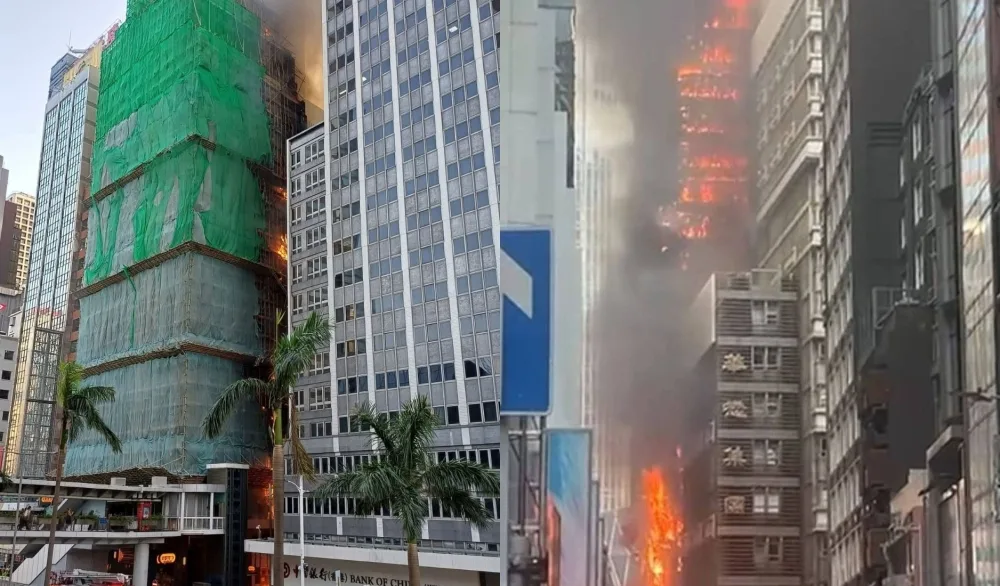 According to reports, the fire began around 4:24 p.m. at the Chinachem Tower on Connaught Road Central. Within minutes, flames spread rapidly across the bamboo scaffolding that covered the exterior of the skyscraper. Witnesses described seeing bright orange flames racing up the side of the building, while debris fell onto the street below.